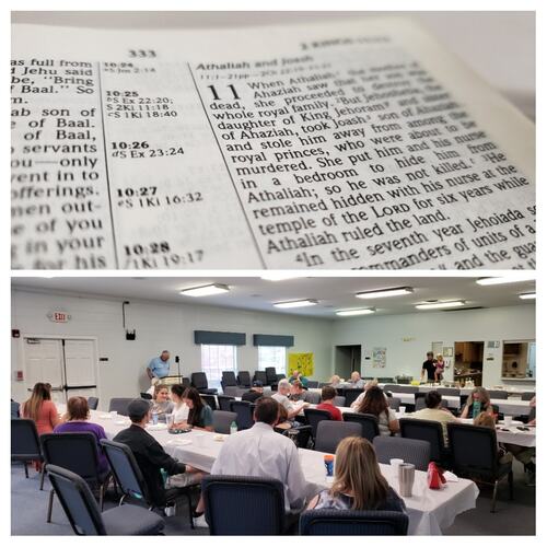 After the children, youth group, and choir members head to their respective classes/meetings, Pastor Wes teaches a short devotional from the Scriptures. We started this practice 18 years ago in Genesis and we have been moving through the Scriptures, passage by passage, ever since.