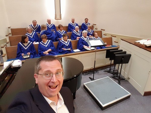 The choir meets for practice at 7:00-8:00 PM. Except for taking a break for the summer, the choir sings every Sunday morning in the worship service.